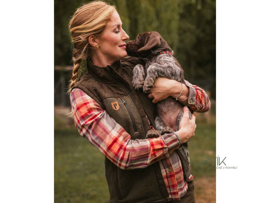 - Klasická vesta s prošívanými záplatami v semišovém vzhledu