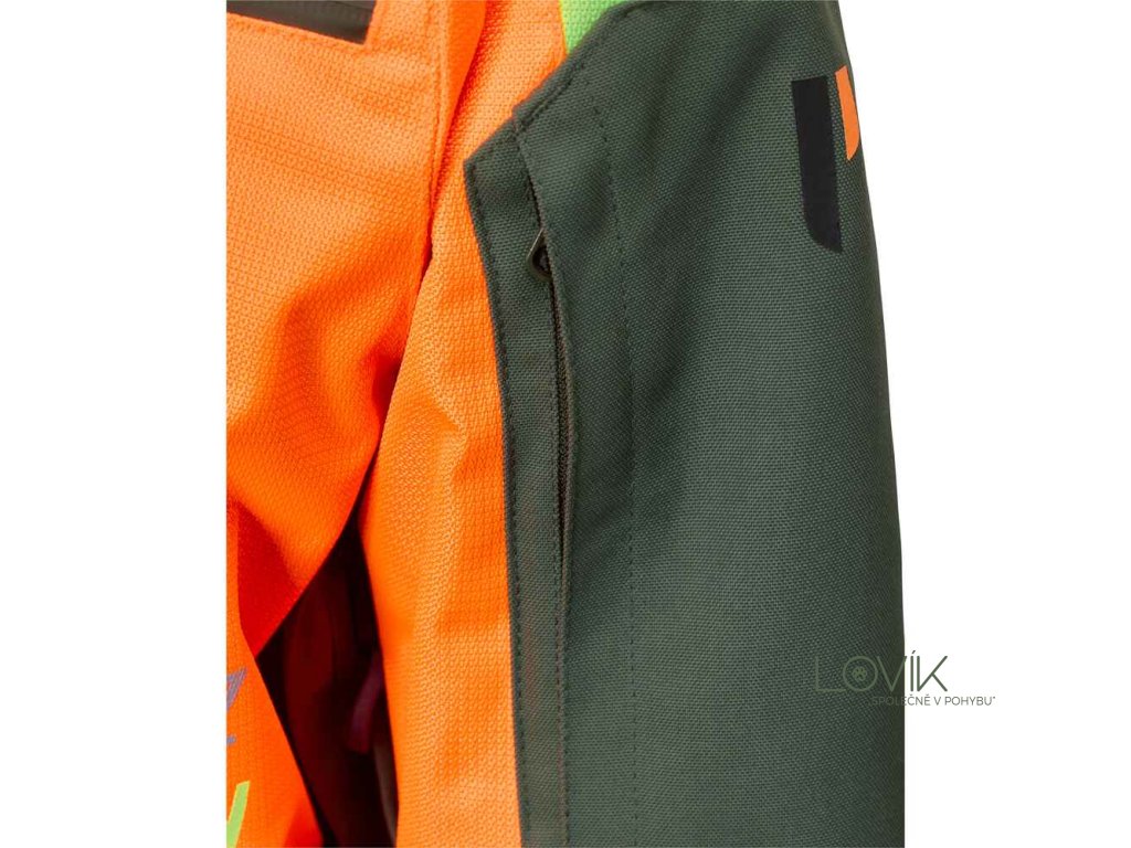 Kevlar® výztuhy na předloktích chrání před větvemi, trny nebo ostrými listy kukuřice. Díky této ochraně je bunda ideální pro psovody, vůdce smeček i honce při naháňkách. Samozřejmostí je odnímatelná a nastavitelná kapuce, dvě voděodolné kapsy na vysílačku a řada dalších praktických kapes, které nabízí dostatek místa pro potřebnou výbavu.