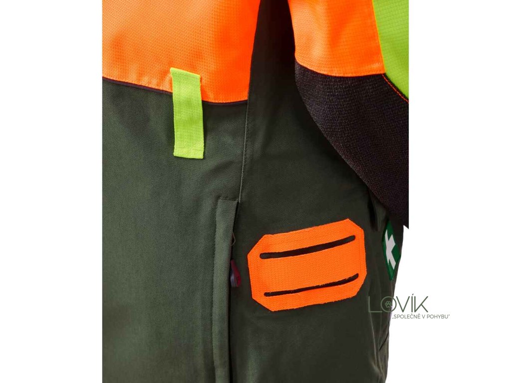 Další detaily, jako je zaječí kapsa se zipy z obou stran nebo kapsa na levém rukávu, rozšiřují možnosti uložení vybavení. Reflexní lemování a vodorovný reflexní pruh na zádech navíc zvyšují viditelnost za šera a při špatných světelných podmínkách.