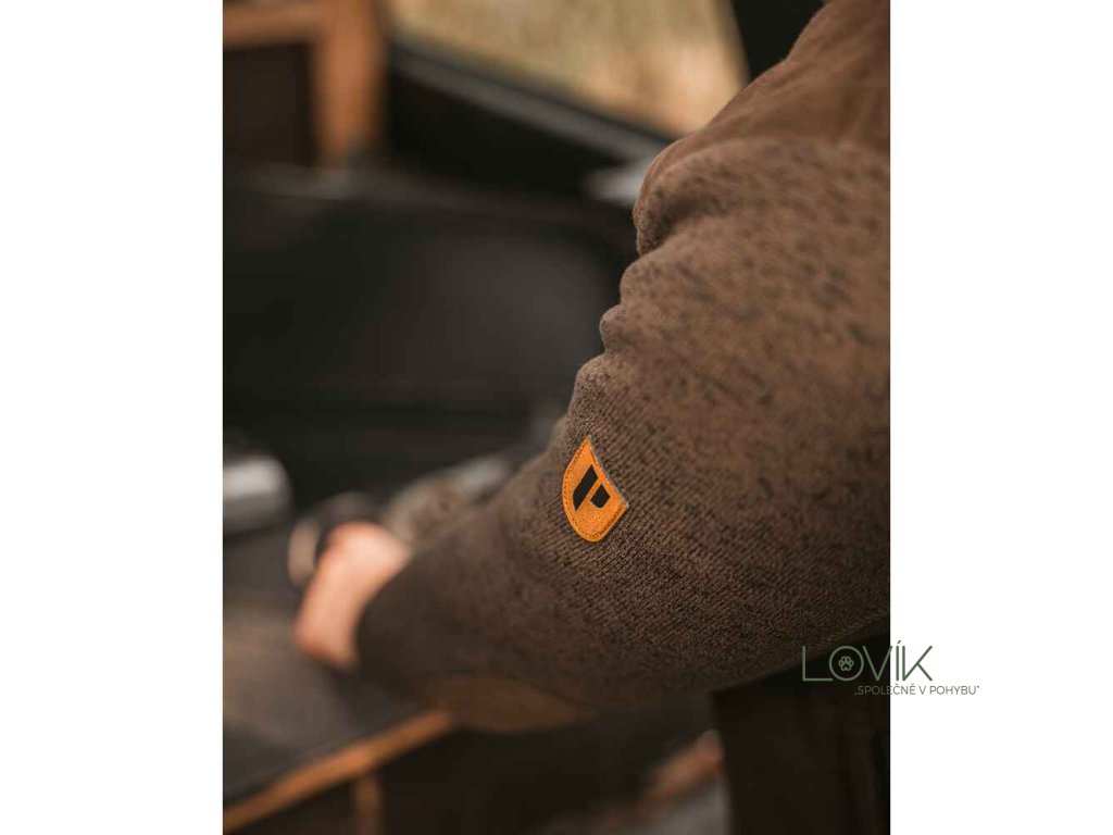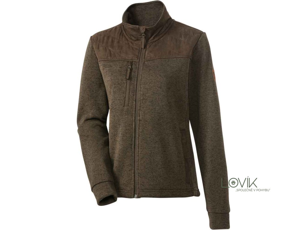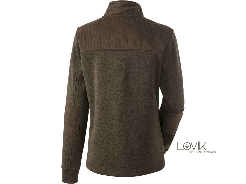 Vyrobena z melírovaného úpletového fleecu s měkce zdrsněnou vnitřní stranou. Ramena, kapsy, lokty a léga zipu jsou navíc zpevněny stylovými stepovanými vsadkami v imitaci velurové kůže, což zajišťuje delší životnost a atraktivní vzhled.