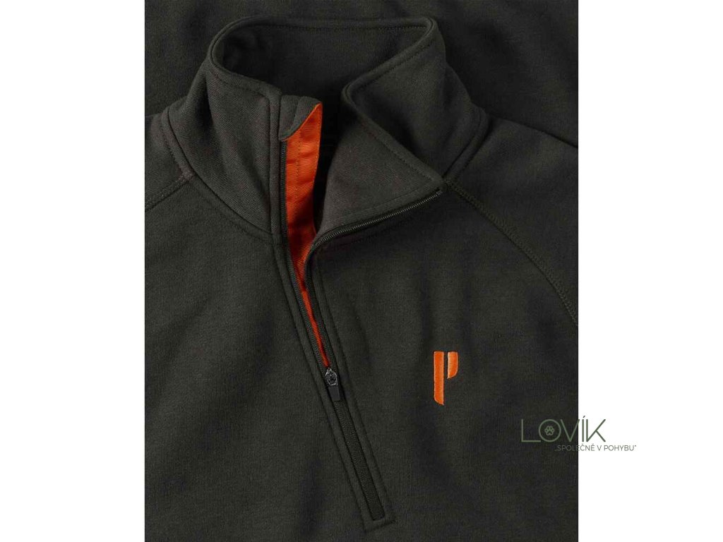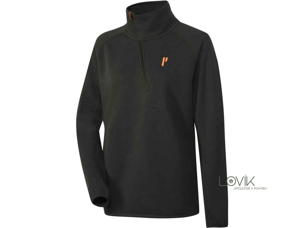 Stojáček s šikmým zipem brání nepříjemnému tlaku při nošení další vrstvy, a díky otvorům na palce zůstávají rukávy na svém místě. Mikina je navržena tak, aby skvěle fungovala jako funkční mezivrstva při lovu, turistice nebo běžném nošení.