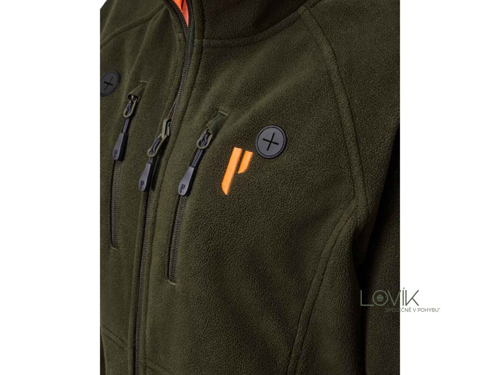Díky oboustrannému provedení si můžete rychle zvolit mezi signální oranžovou pro vysokou viditelnost nebo olivovou pro nenápadný vzhled v lese či na lovu. 2cestný přední zip umožňuje lepší větrání a flexibilitu, takže bunda je skutečně praktickým společníkem při myslivosti i outdoorových aktivitách.