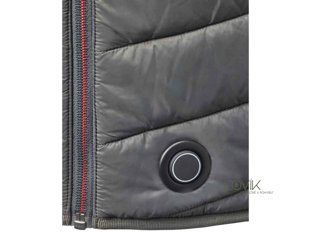 Díky integrovaným topným zónám v oblasti hrudníku, ramen a šíje umožňuje vesta cílené zahřátí podle potřeby. Tři stupně ohřevu lze jednoduše nastavit pomocí tlačítka – od 45 °C až po 55 °C. Napájení zajišťuje běžná powerbanka (doporučeno 10.000 mAh), kterou lze uložit do vnitřní kapsy se zipem a USB kabelem. Doba provozu závisí na kapacitě použité powerbanky.