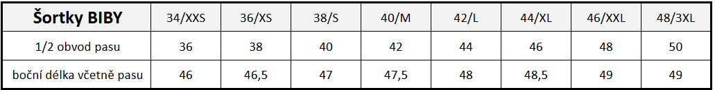 Velikostní tabulka: