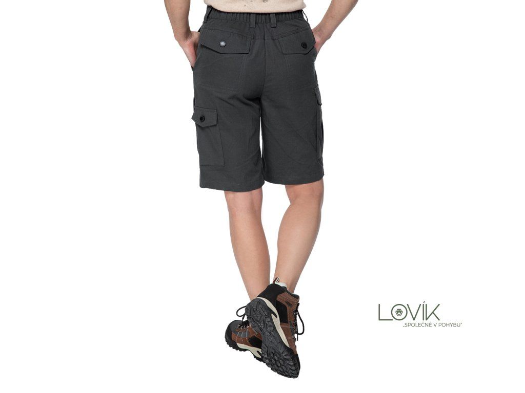 Šortky jsou vyrobeny z kombinace polyesteru a bavlny, což zajišťuje odolný materiál, dobrou prodyšnost a pohodlí i během teplých letních dní. Elastický pas spolu s poutky na pásek umožňuje individuální nastavení a pohodlné nošení i při delším pohybu v terénu.