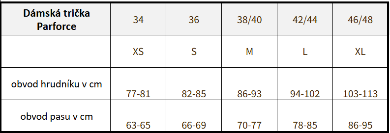Velikostní tabulka: