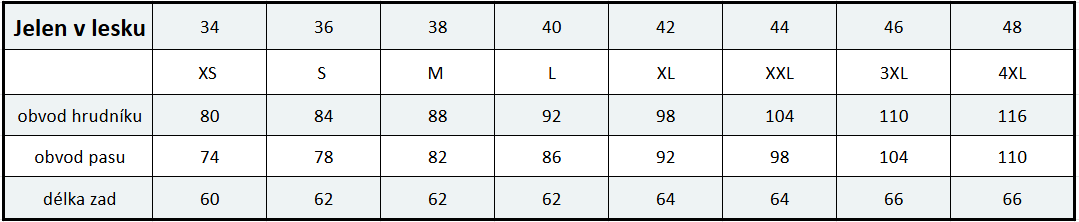 Velikostní tabulka: