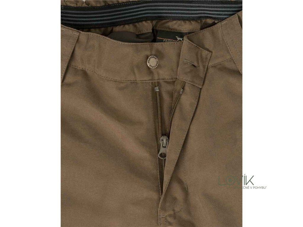 Díky dvěma bočním cargo kapsám na zip a dvěma klasickým kapsám na ruce nabízí kalhoty dostatek prostoru na veškeré lovecké vybavení. Protiskluzový pas zajistí, že kalhoty perfektně drží i při pohybu. Šířku nohavic lze upravit pomocí patentek, háček na tkaničky pak zabraňuje jejich vyhrnování. Vnitřní podšívka nohavic je navíc odolná vůči vlhkosti a znečištění.