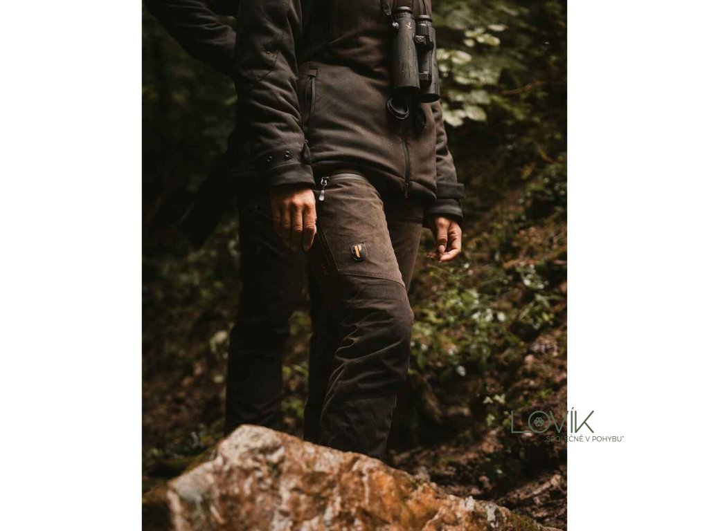 Kalhoty jsou vyrobeny z měkkého a tichého materiálu, ideálního pro myslivecké použití. Zesílené části v oblasti kolen a sedu zvyšují odolnost a životnost. Boční větrací zipy s jemnou síťovinou zajišťují optimální cirkulaci vzduchu a zabraňují přehřátí během pohybu.