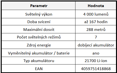 Světelný výkon až 4 000 lm – tři kvalitní OSRAM LED diody poskytují maximální jas a čisté bílé světlo