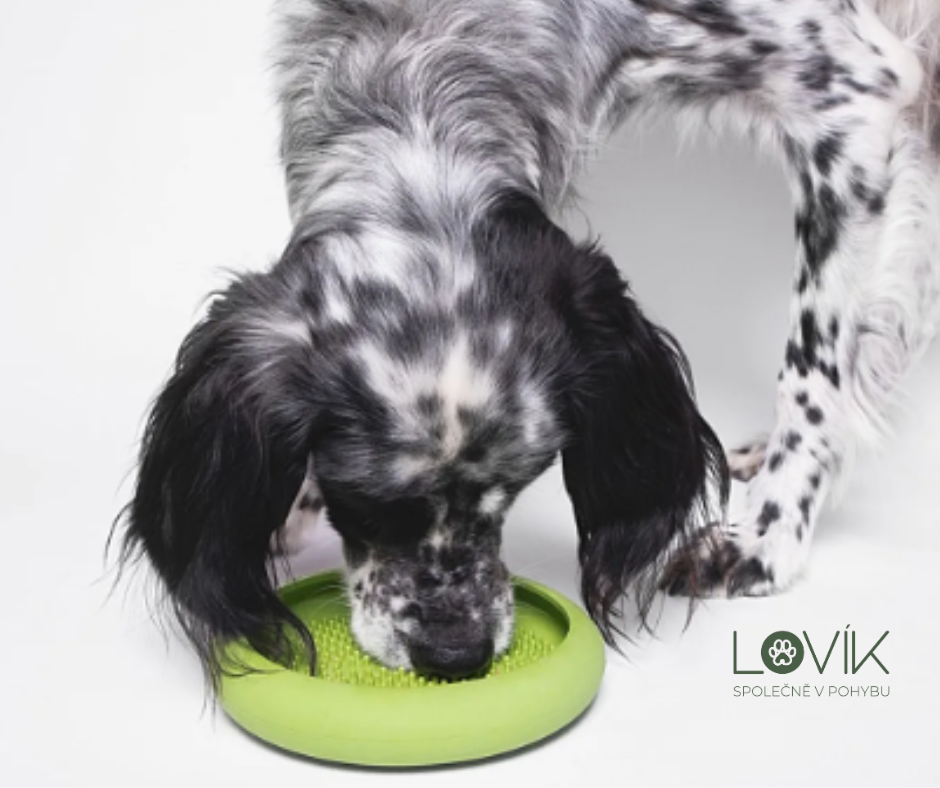 Lízací podložka (nebo silikonová forma) – olizování psa uklidňuje a pomáhá proti stresu.