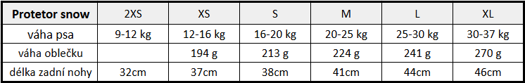 • Celotělová ochrana před sněhem a chladem – zabraňuje tvorbě zmrzlých kuliček, které mohou psům při chůzi vadit.