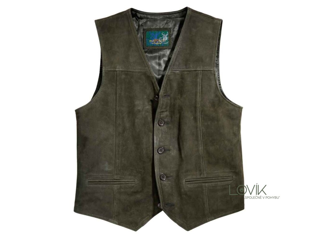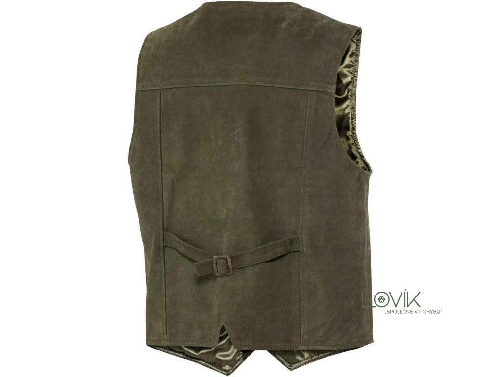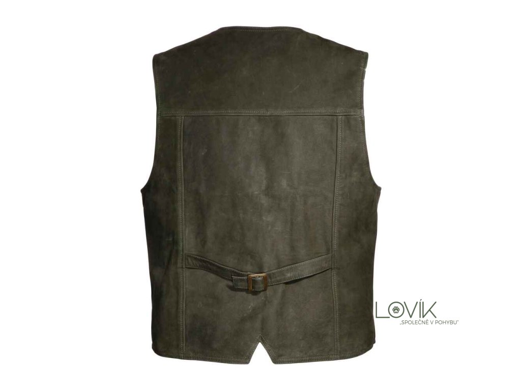 Sportovní vesta z buvolího nubukového kůže pro lov i volný čas. Perfektně ladí s oblíbenými buvolími koženými kalhotami. Vesta má zapínání na knoflíky, klasický výstřih do V a prošívané vyztužené ramenní partie. Praktické dvě vnější kapsy a jedna vnitřní kapsa, ideální pro peněženku, mobil nebo jiné drobné cennosti. Na zádech je nastavitelný pásek pro lepší přizpůsobení postavě.
