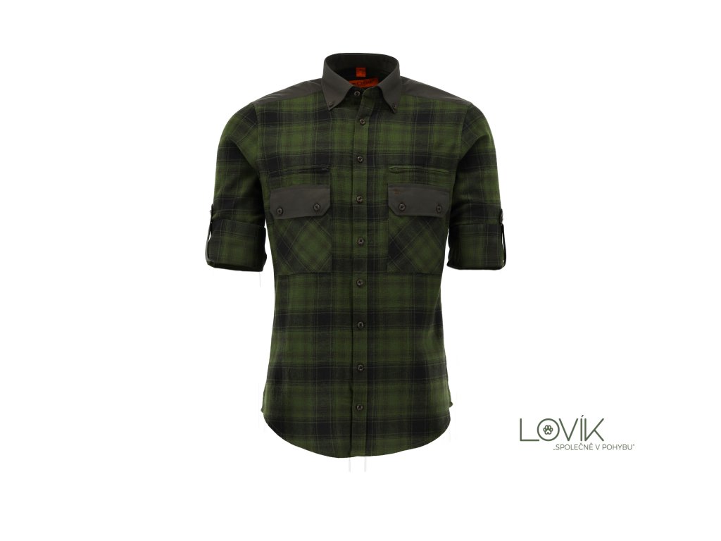 Lehká, hřejivá a perfektně padnoucí košile, která se hodí do přírody, na myslivost i každodenní nošení. Má moderní žraločí límec se zapínáním button-down, který kombinuje elegantní vzhled a praktické držení tvaru.