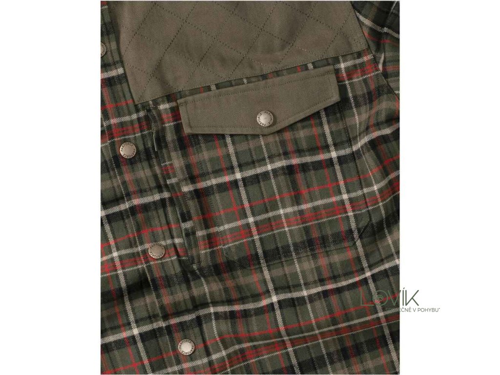 Košile je vybavena prošívanými ramenními výztuhami a zesílenými částmi na předloktí, které chrání exponovaná místa a zároveň dodávají košili výrazný, mužný vzhled.