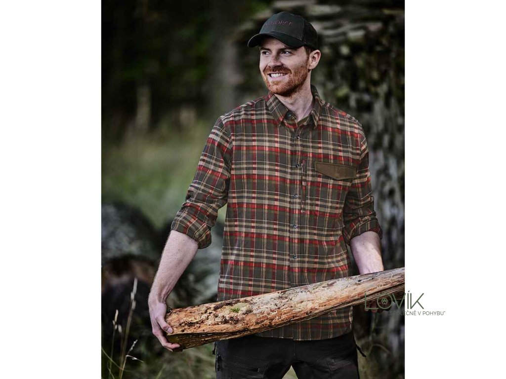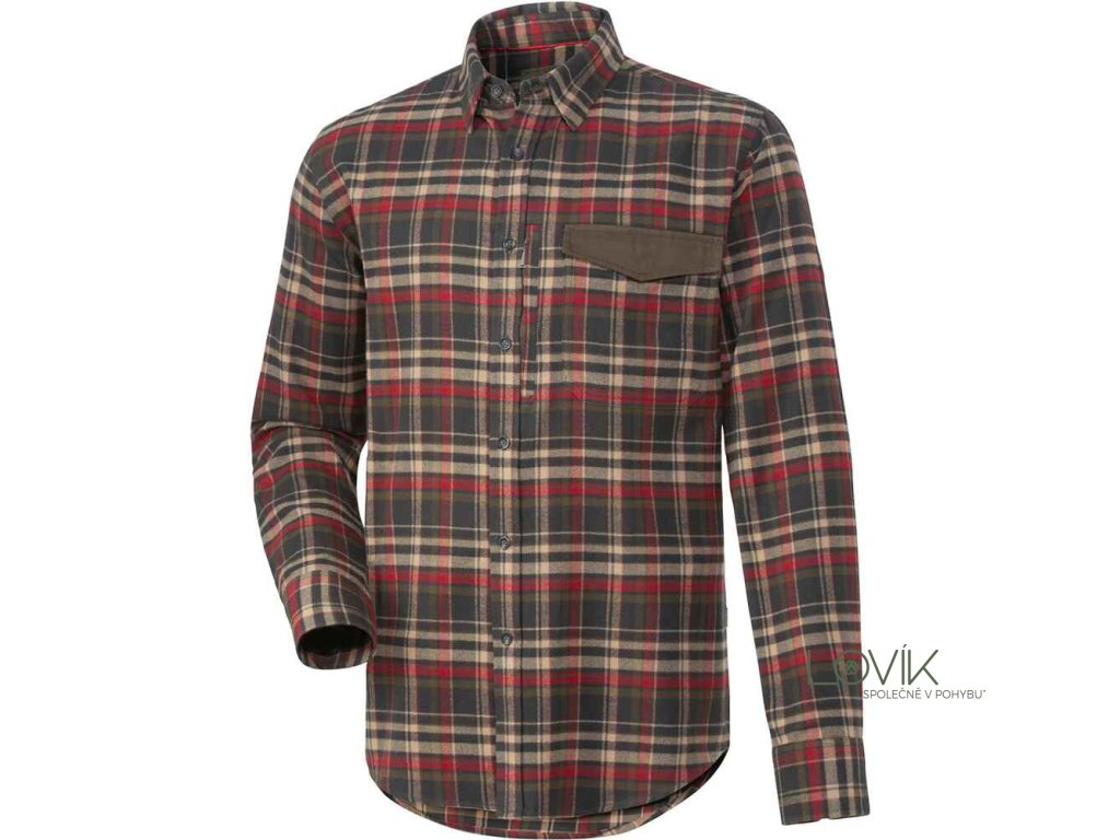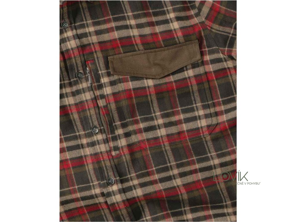 Zemitý olivový základ s jemným červeným akcentem dává košili tradiční lovecký charakter, který však působí svěže a nadčasově. Ať už jste na čekané, pochůzce nebo společenské akci v revíru, budete v ní vždy vypadat dobře.