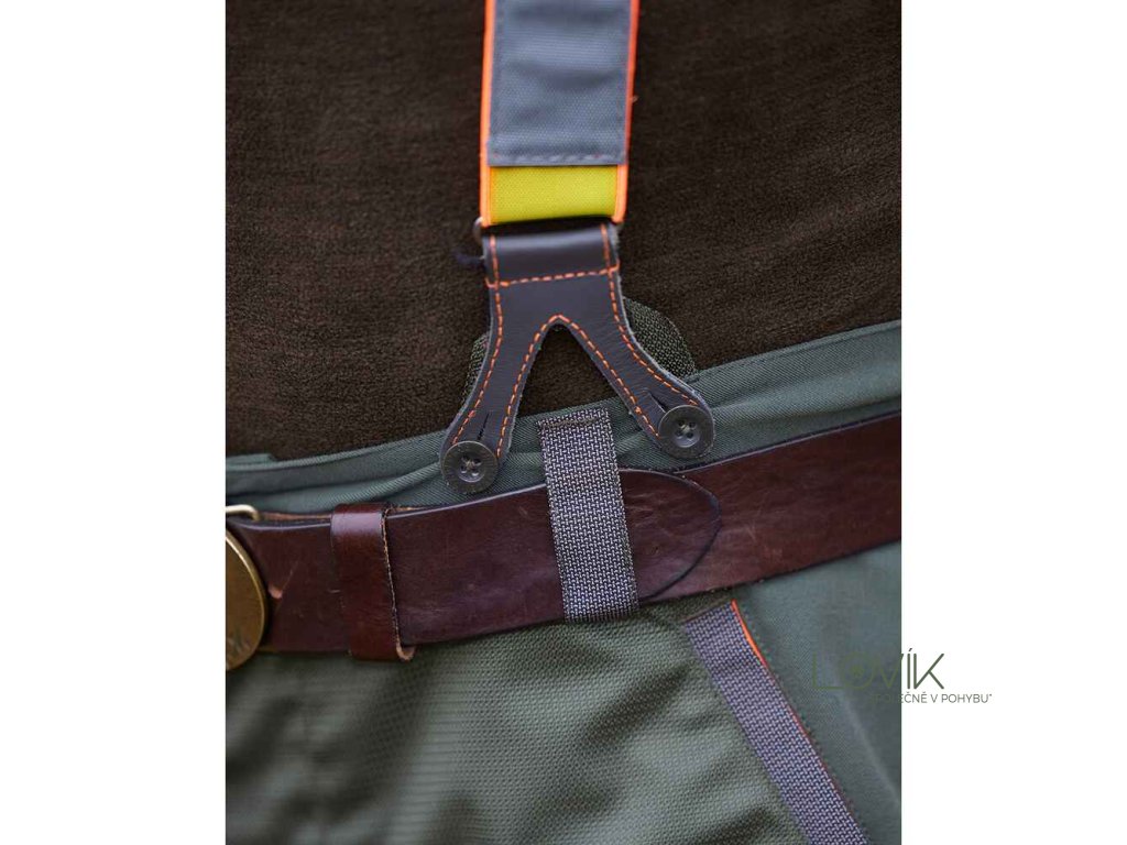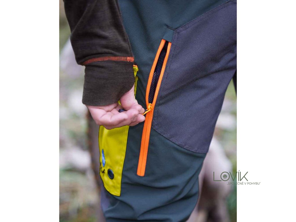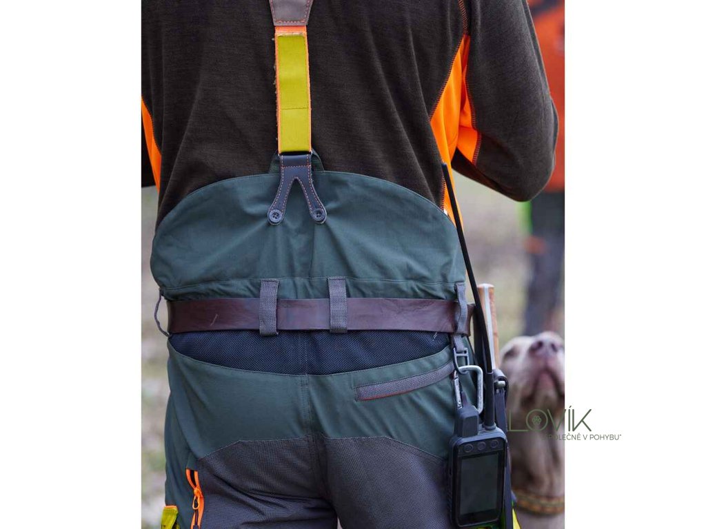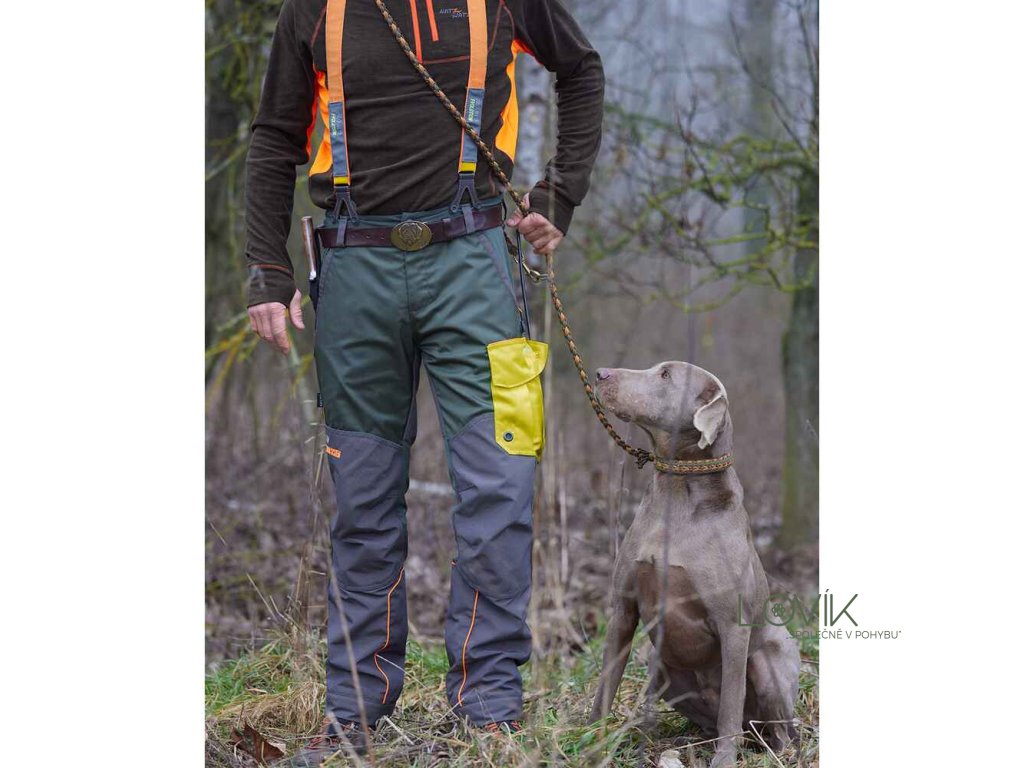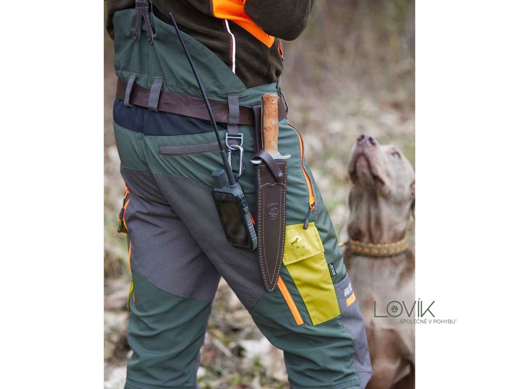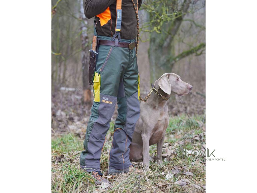 Ve spolupráci se zkušenými myslivci, vodiči smeček a profesionály z praxe byl při vývoji kladen důraz na bezpečnost, volnost pohybu a funkční prodyšnost. Odolný materiál z 800D polyesteru s membránou v kombinaci s výztuhami z Kevlaru® v oblasti holeně a kotníků a pružným Nylon® strečem v rozkroku zajišťuje spolehlivou ochranu před trním, větvemi i nečistotami. Přesto zůstávají kalhoty pohodlné a lehké – ideální pro dlouhé dny v revíru.