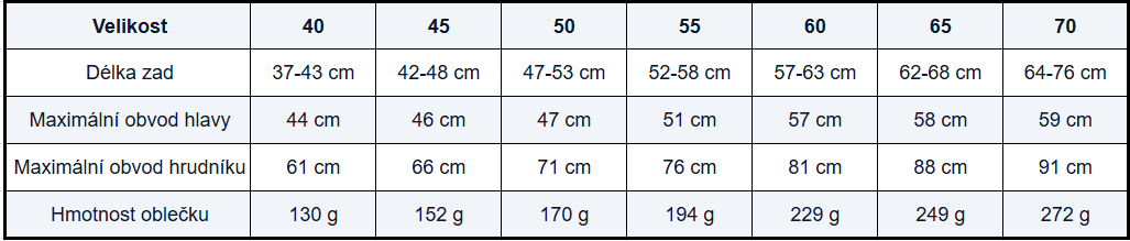 Pláštěnka je kompatibilní s tahacími postroji a má otvor pro jejich připnutí. Není určena pro použití s obojkem.
