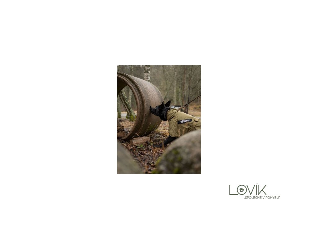Drenážní otvory zabraňují zadržování vody v oblasti břicha. Tichá tkanina umožňuje nerušený pohyb bez šustění, což je klíčové při soustředěné práci psa. Praktické suché zipy umožňují připevnění identifikačních či reflexních nášivek (originální nášivky jsou součástí balení).