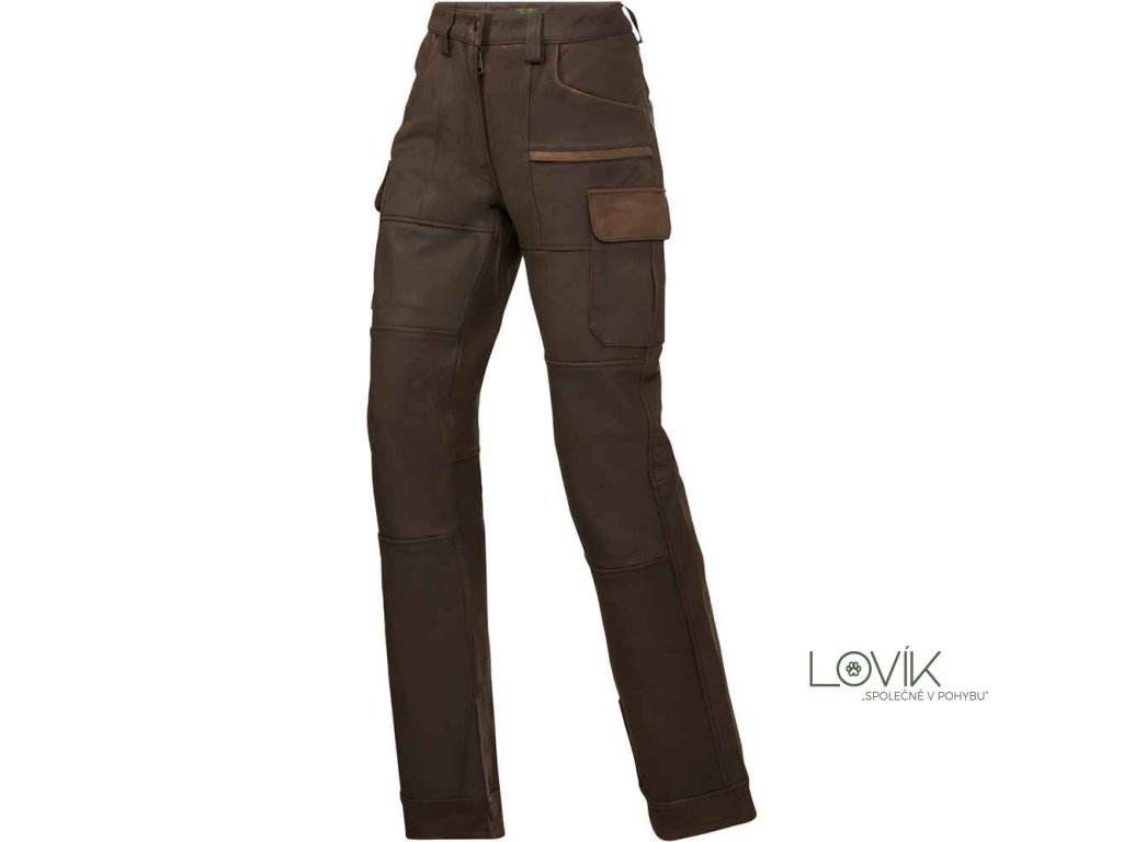 Tyto dámské lovecké kalhoty z měkké, ale odolné hovězí kůže v kontrastním designu jsou perfektní volbou pro myslivost i outdoorové aktivity.